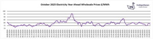 The filling of EU Gas Storage is making slow progress at 76% full. Last year injections continued until late October, reaching 96%, but this largely depends on the temperatures across Europe and the availability of Gas. We no longer have the supplies that came from Russia via Ukraine, which ended in January 2025. It is very unlikely that restrictions on supplies would need to be put in place, but forecasts of colder than average periods will probably be reflected in higher Gas and Electricity Wholesale costs.