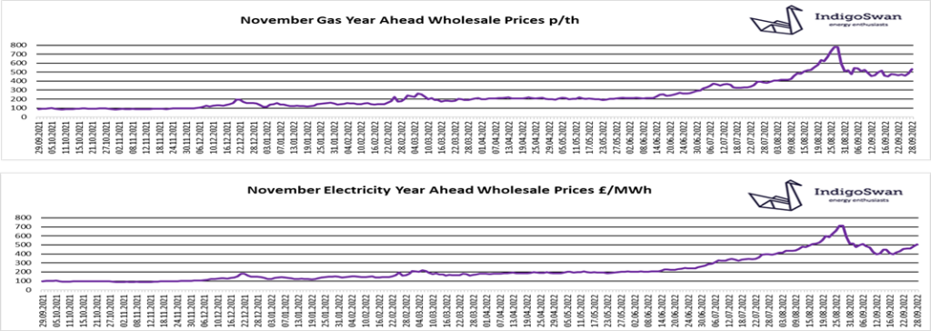 Gas and Electricity prices remain extremely volatile. The disruption of Gas flows or at least the threat, appears to be a deliberate manipulation of the energy markets to inflate costs and cause damage to economies. Due to this instability, we would advise looking at your options for contracts into 2023 and having conversations with your contact at Indigo Swan about your specific requirements.