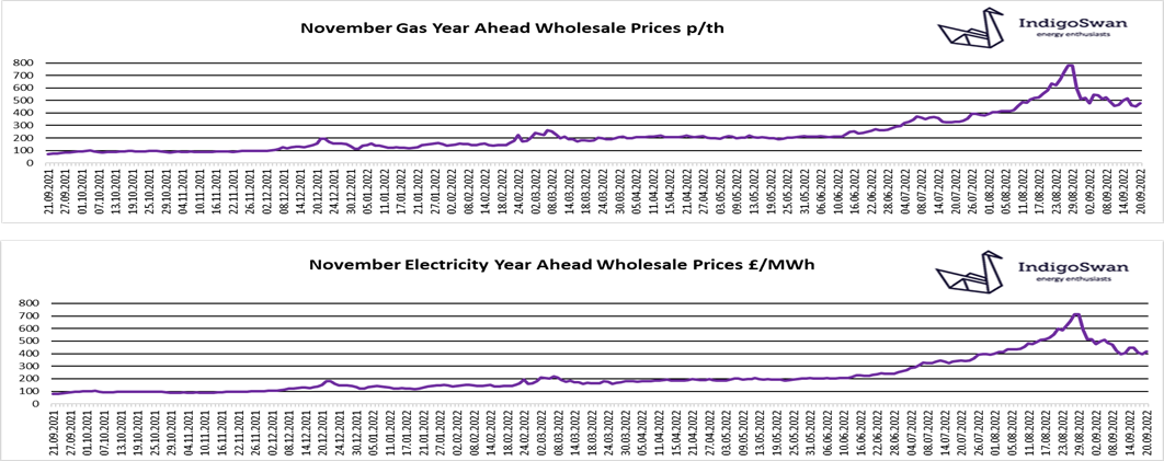 Gas and Electricity prices remain extremely volatile. Price direction will likely be led by Russia, meaning there is a great deal of uncertainty which way they will go. Therefore, we would advise looking at your options for contracts ending in 2022 and having conversations with your contact at Indigo Swan about your specific requirements.