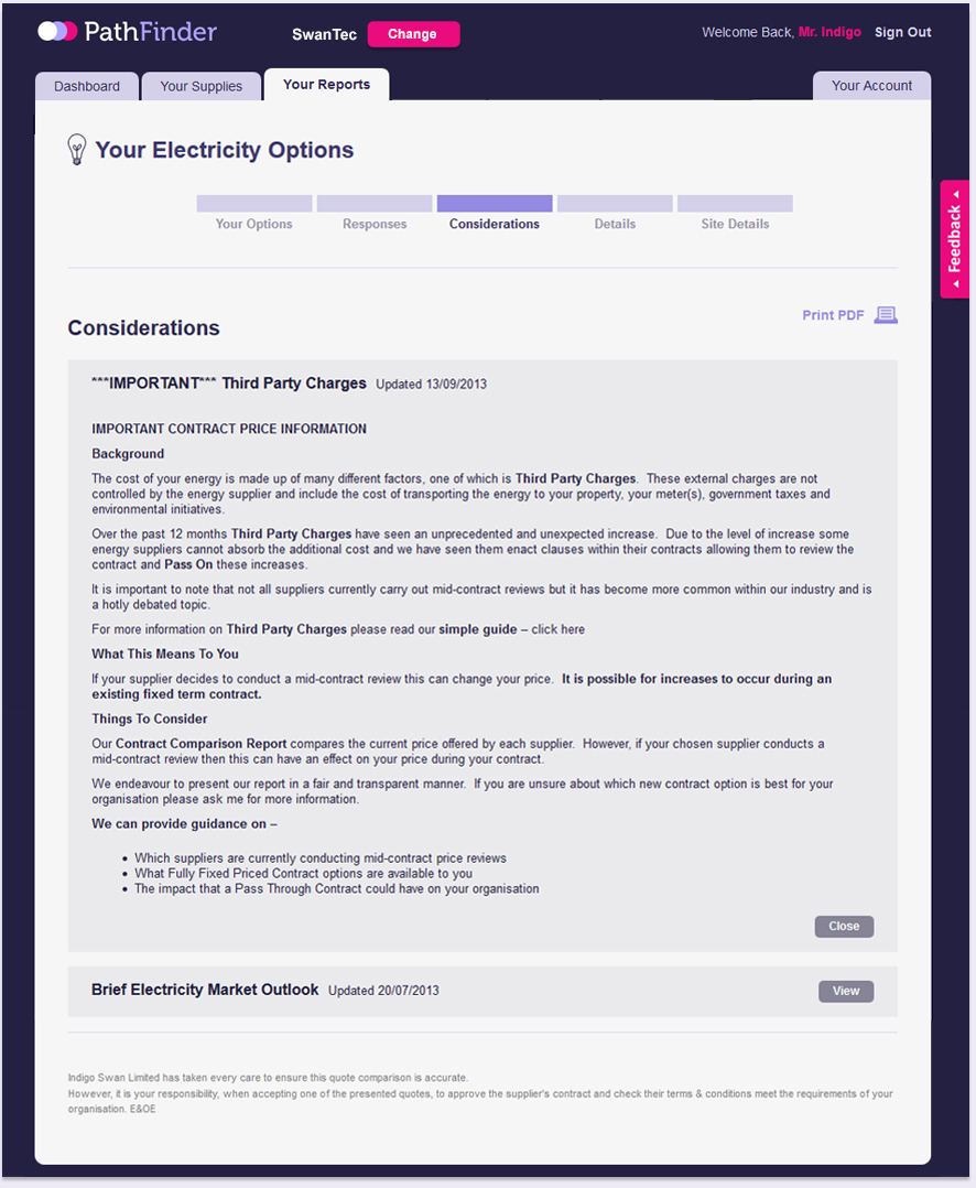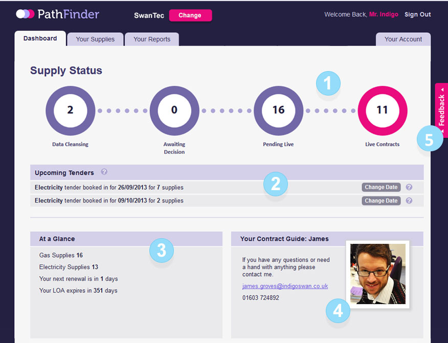 Pathfinder is an online management tool that gives Indigo Swan clients access to all their energy related information in one convenient place.