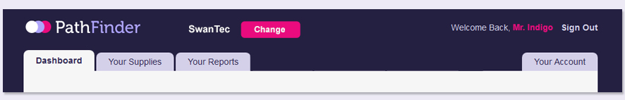 You can access the various pages by clicking the tabs, everyone will have a Dashboard, Your Supplies, Your Reports & Your Account tabs. Other tabs will become available for different products if you decide to use them.