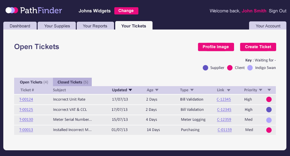 If you have an issue, for instance a problem with an invoice or a contract query, you can submit a ticket to us so we can work on it for you. This lets you see the progress of that ticket, share further information with us and the resolution, should you need to reference this again in the future.